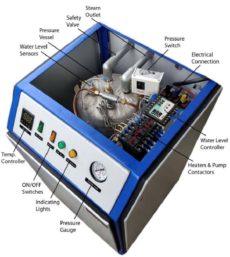 Nồi hơi đốt điện được trang bị hệ thống điều khiển tự động, cảm biến áp suất, cảm biến mực nước, rơ-le nhiệt và van an toàn. Khi xảy ra sự cố như quá nhiệt, cạn nước hay quá áp, hệ thống sẽ tự động ngắt điện để đảm bảo an toàn tuyệt đối cho người và thiết bị.